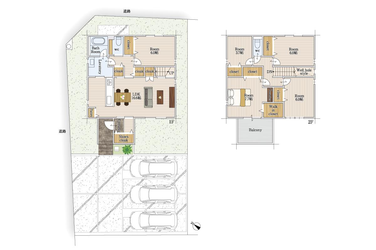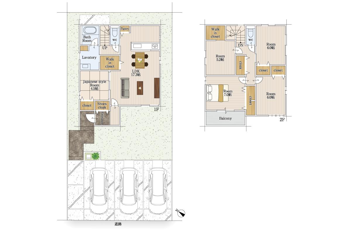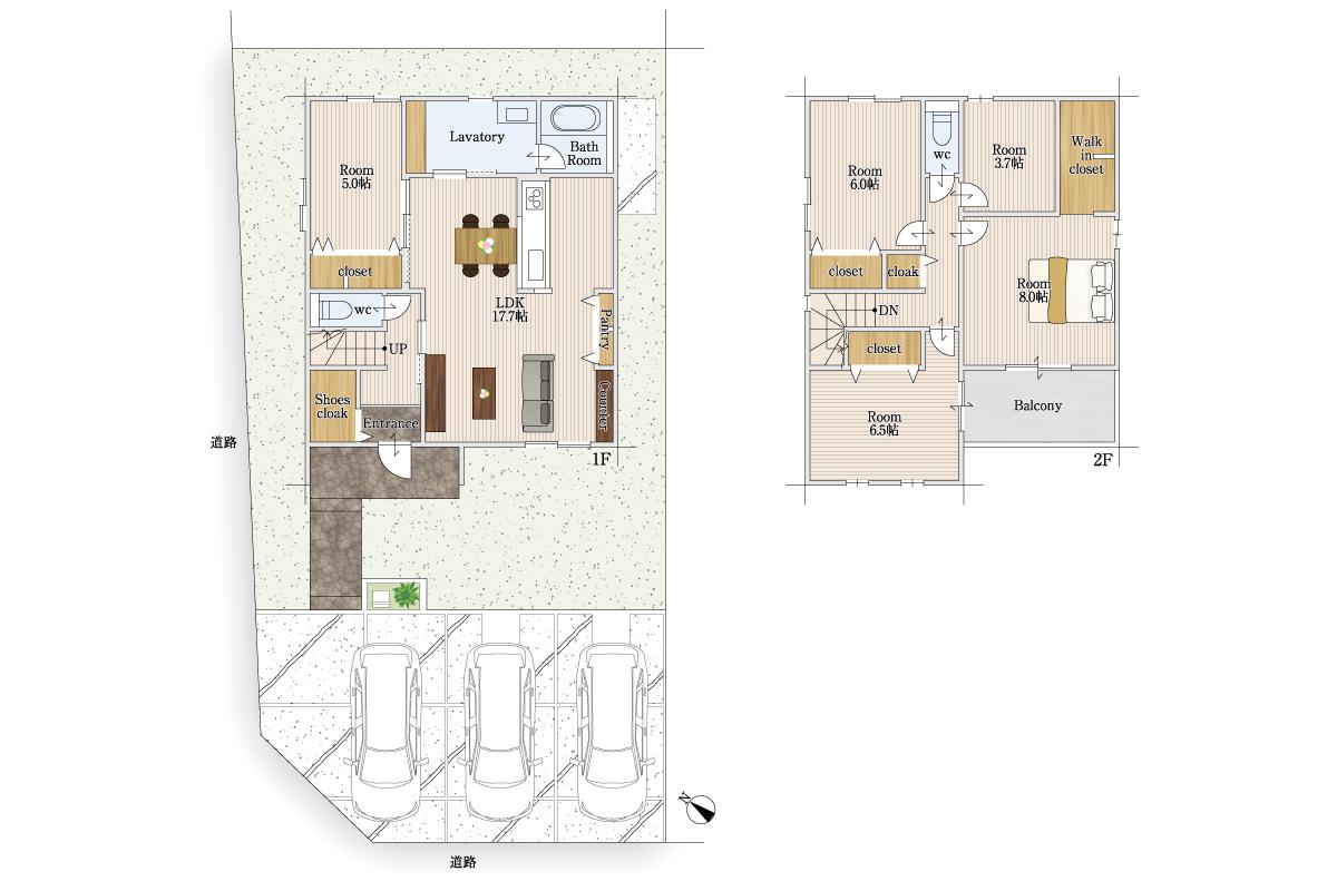 | 構造 | 木造二階建て(在来工法) | 駐車場 | 3台 |