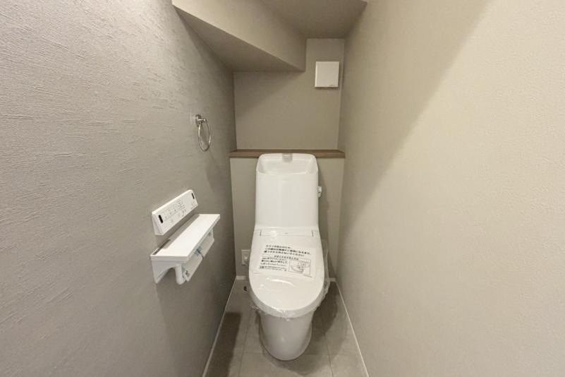 手洗いは吐水口とボウルが滑らかにつながったデザイン。便座もシームレスで便座裏には防汚素材を使用し、お掃除のしやすいフチのないデザインとなっています。また、パワーストリーム洗浄で強力な水流が便器鉢の中のすみずみまでしっかりと回り、少ない水で高い洗浄力を発揮します。