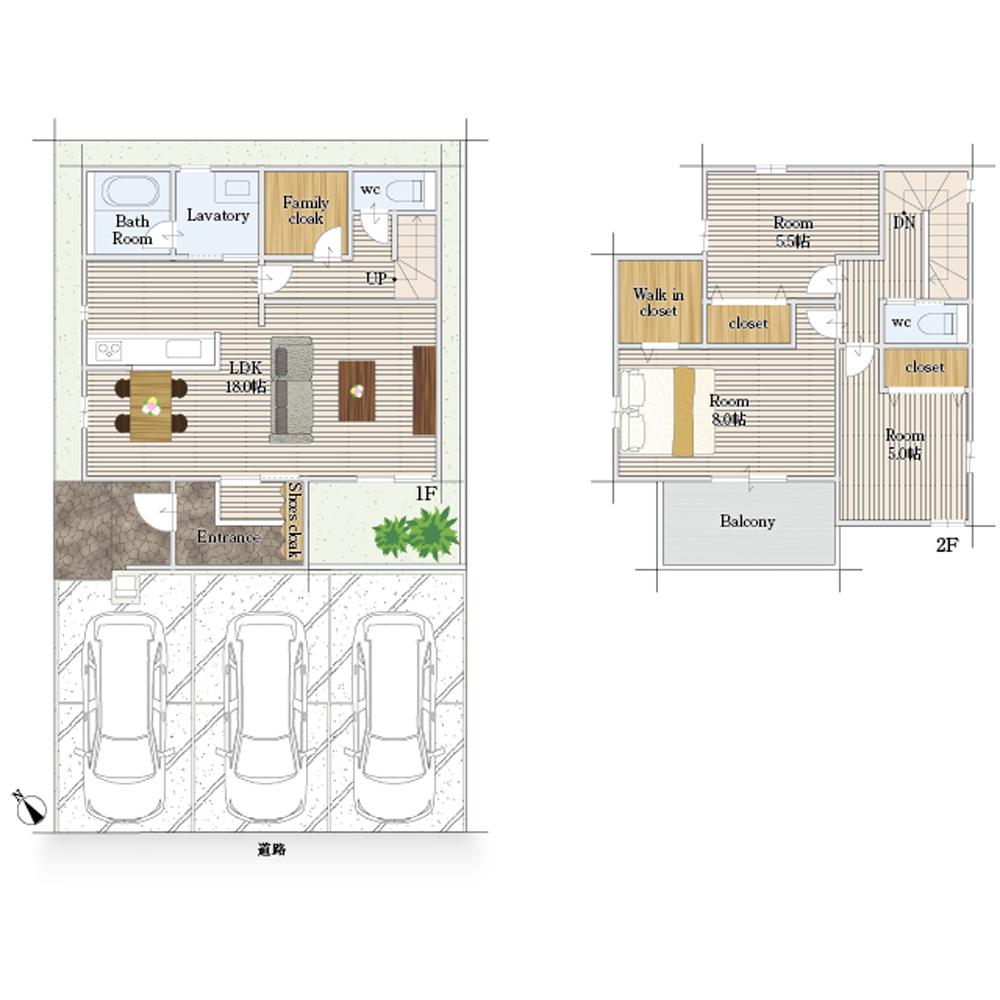 構造 木造2階建(在来工法) 駐車場 3台(普2台+軽1台)