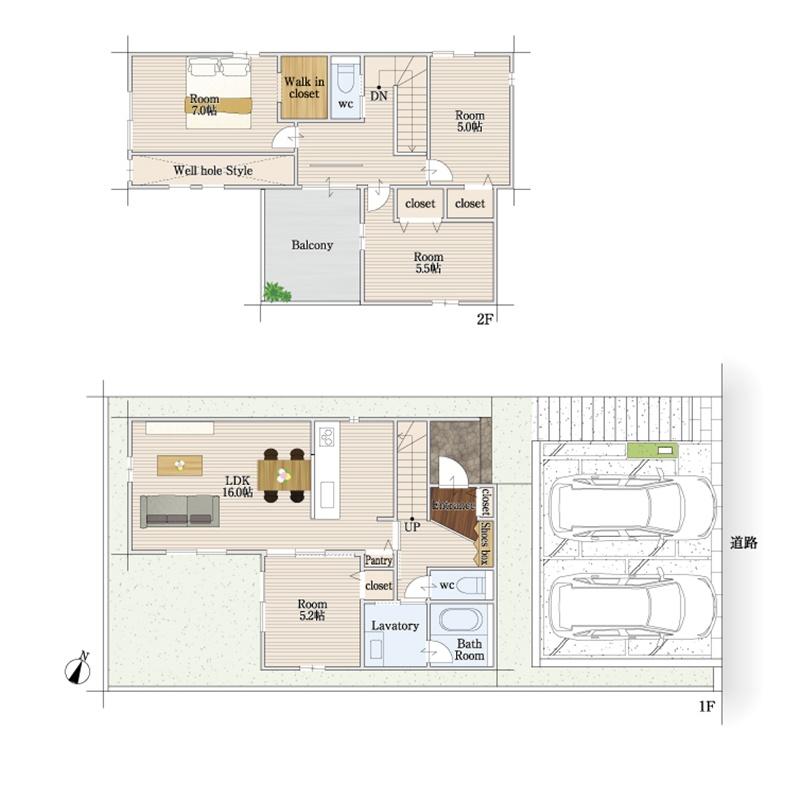 構造 木造2階建て 駐車場 2台