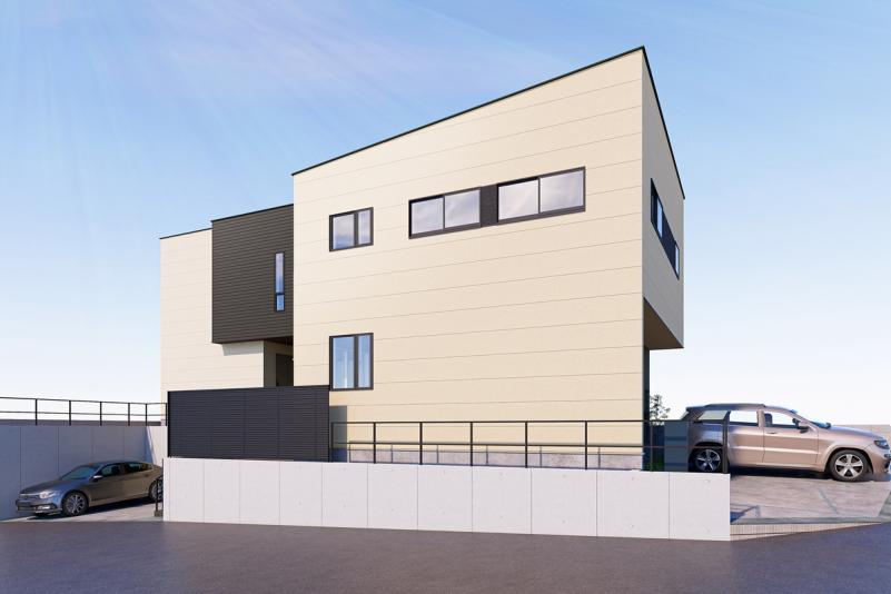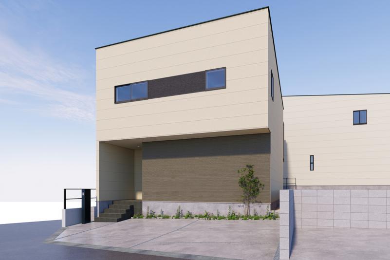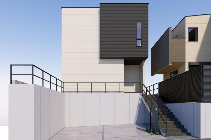 シンプルモダンな外観の2号地3号地