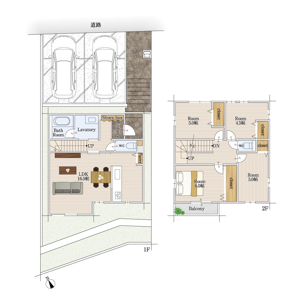 構造 木造2階建(在来工法) 駐車場 2台