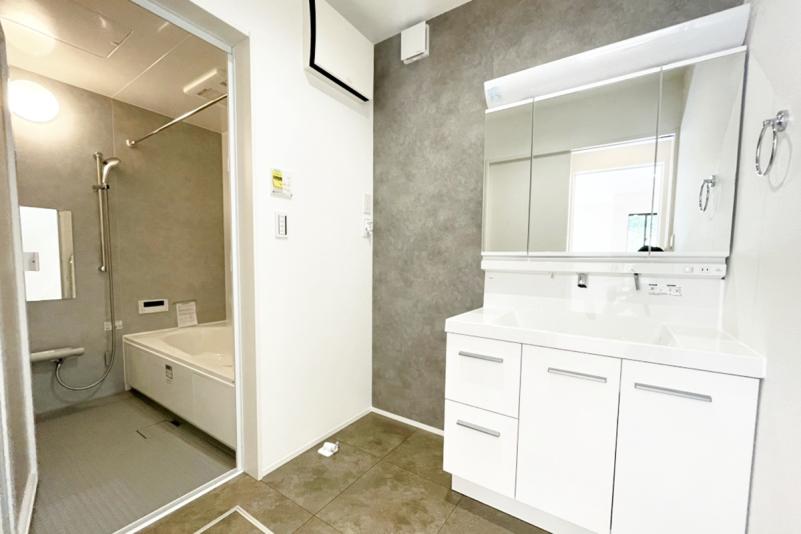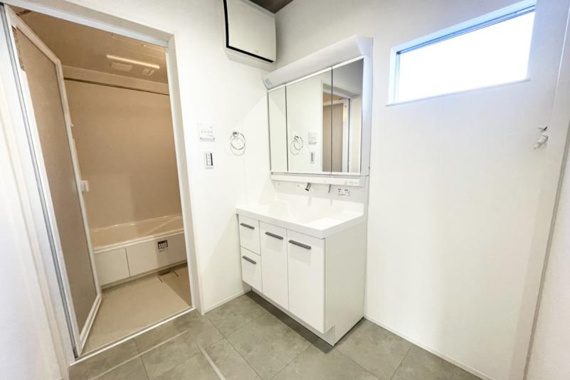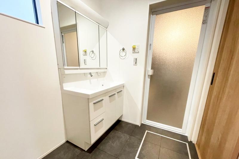 リビング・廊下の2方向から出入りできる洗面所