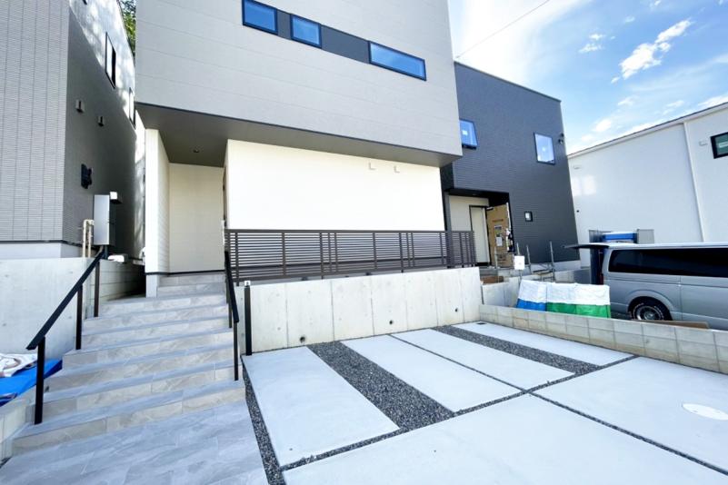 保育園や公園、スーパーが近くにそろい、毎日の生活がスムーズに送れるエリアです。駅までも自転車でアクセスしやすく、通勤・通学も快適。買い物環境が充実しているのも嬉しいポイントです。シンプルで洗練された外観デザインが街に映える、長く愛せる住まいとなっています。