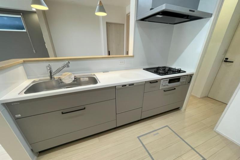特殊な表面処理で汚れが付きにくく落としやすい床は、独自の断熱層で寒い季節でも冷たく感じにくいキレイサーモフロア。取り外して洗える便利なカウンターも採用しています。