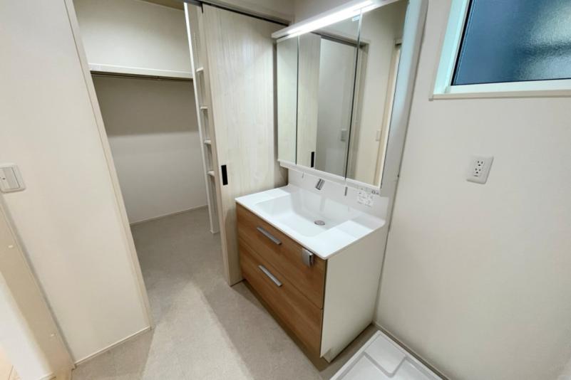 洗面脱衣室にはクロークを併設し、身支度から収納までが一直線。