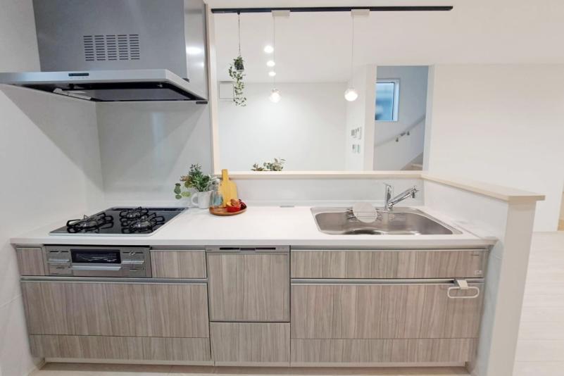 底面は傷が目立ちにくく、奥行きワイドなステンレスシンク。小物置き付きでシンク周りの小物をすっきり収納できます。ストック類や普段使わないものを分類できる機能的な収納のキャビネットはソフトクローズレール仕様で静かにピタッと閉まる、安全な引き出し。