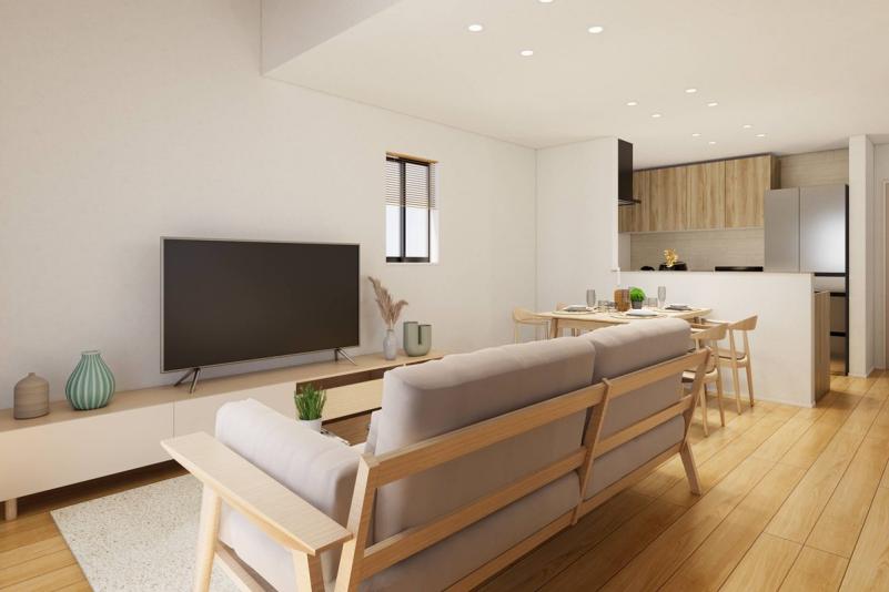 リビング・ダイニング・キッチンと書斎スペースを合わせて21帖の開放的な空間です。