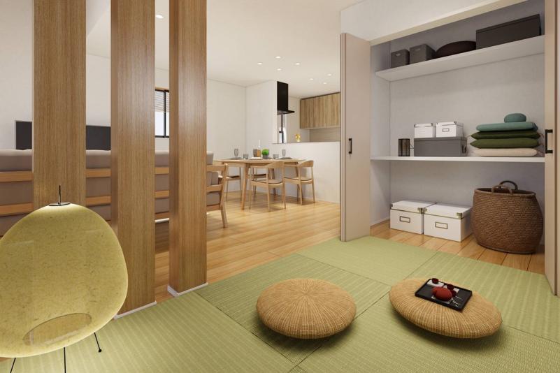 LDKの一角に設けた畳コーナーは、キッチンからも目が届く安心設計。