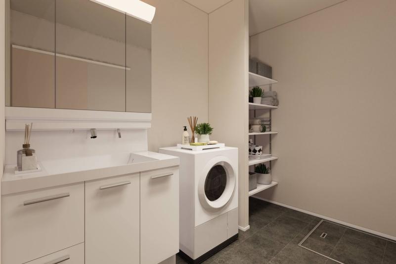 帰宅後すぐに手洗い場へ直行できる間取りになっており、家族やお子様が帰ってきてすぐに手を洗うことができるため、清潔で安心な暮らしを実現できます。