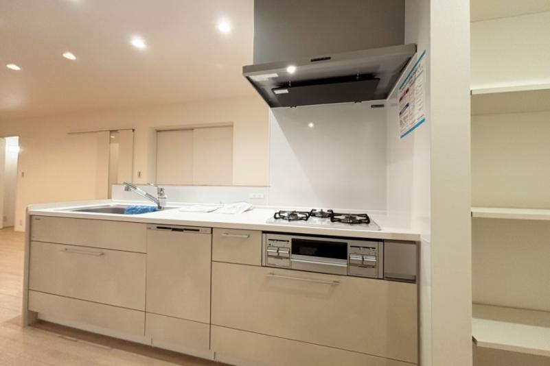 底面は傷が目立ちにくく、奥行きワイドなステンレスシンク。小物置き付きでシンク周りの小物をすっきり収納できます。ストック類や普段使わないものを分類できる機能的な収納のキャビネットはソフトクローズレール仕様で静かにピタッと閉まる、安全な引き出し。