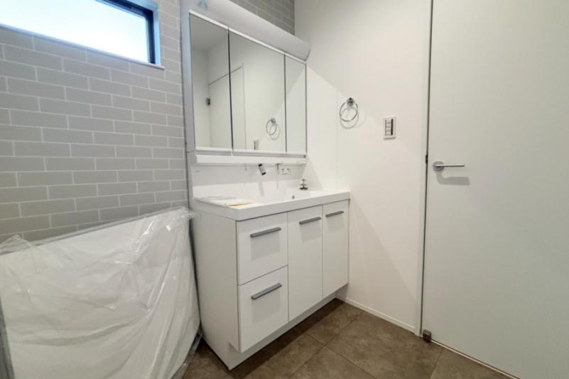 毎日使うハブラシなどの衛生用品や化粧品など、細かなものをそれらのきちんと収納できるミラーキャビネットはLEDライトでお顔映りもバッチリ。またキレイアップ水栓は、水栓が上部にあるので周りに水がたまりにくく、水滴を拭き取るだけで簡単キレイ。