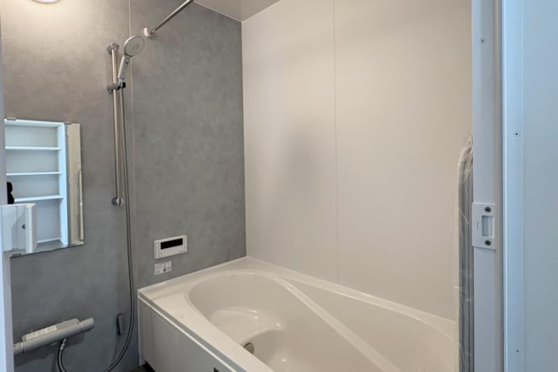 水滴にたっぷりの空気を含ませることで、ボリュームのある浴び心地と節水の両立を実現したシャワーヘッド。特殊な表面処理で汚れが付きにくく落としやすい床は、独自の断熱層で寒い季節でも冷たく感じにくいキレイサーモフロア。取り外して洗える便利なマグネットシェルフも採用しています。