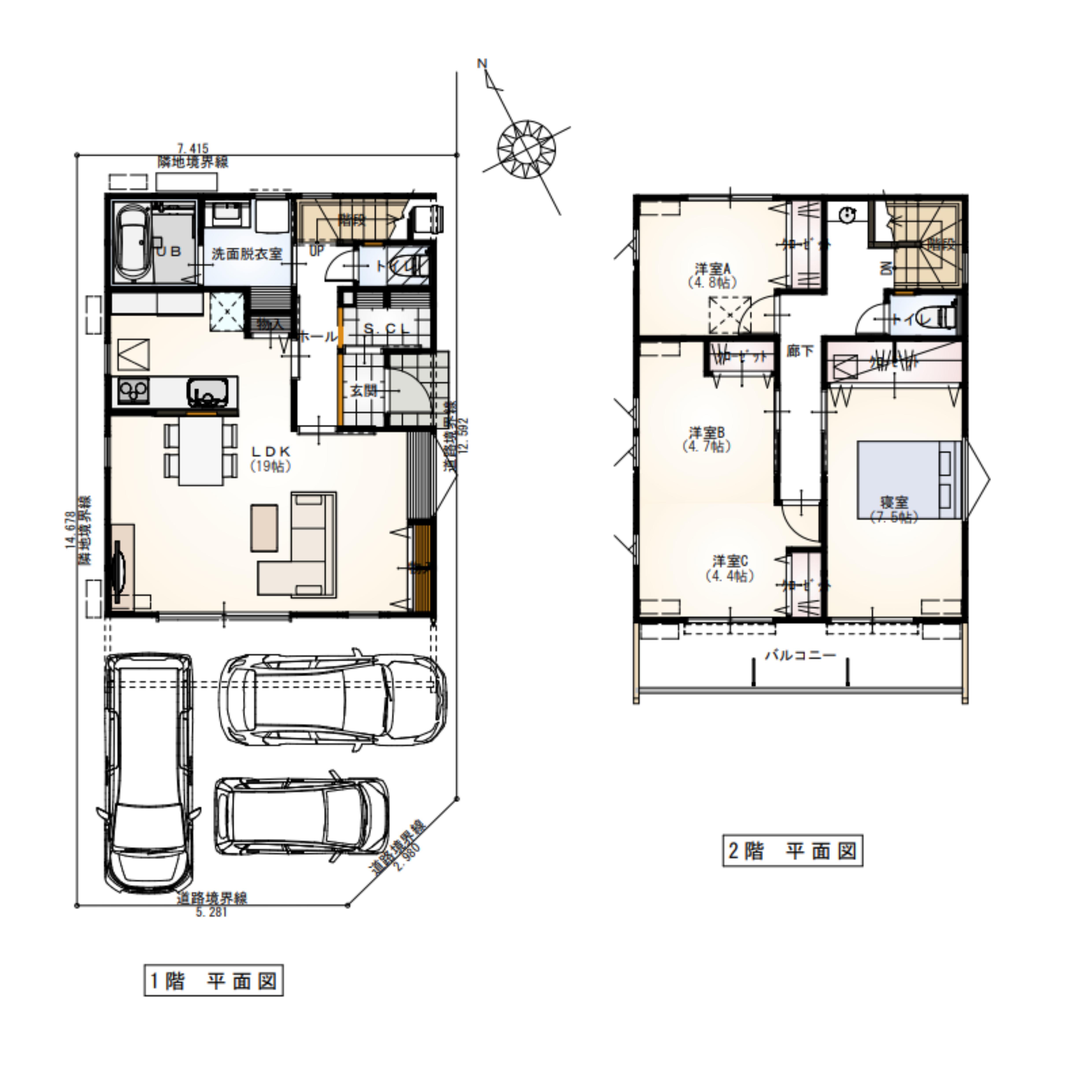 | 構造 | 木造軸組壁工法・制震装置付2階建 | 駐車場 | 3台(普2台+軽1台) |