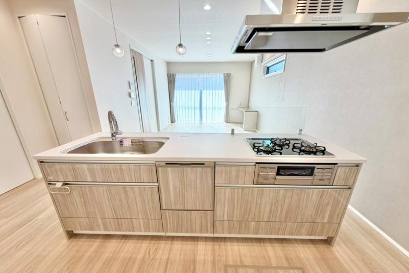 底面は傷が目立ちにくく、奥行きワイドなステンレスシンク。小物置き付きでシンク周りの小物をすっきり収納できます。ストック類や普段使わないものを分類できる機能的な収納のキャビネットはソフトクローズレール仕様で静かにピタッと閉まる、安全な引き出し。