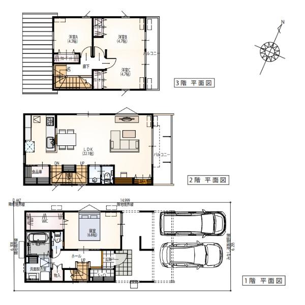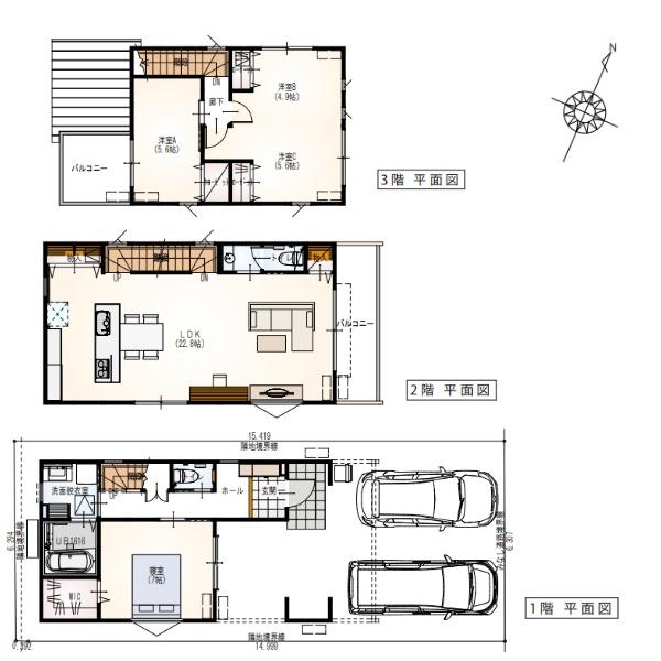 | 構造 | 木造軸組壁工法 3階建 | 駐車場 | 2台 |