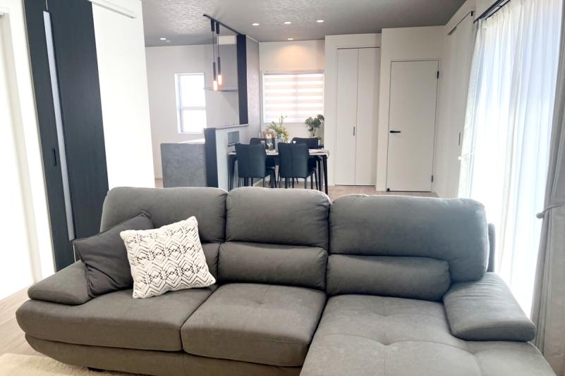 ・22.9帖の広々LDKは、南向きで明るく開放的。家族が自然と集まり、ゆったりとした時間を過ごせる心地よい空間です。キッチンからリビング・ダイニングを見渡せる設計で、家事をしながら家族との会話も楽しめます。