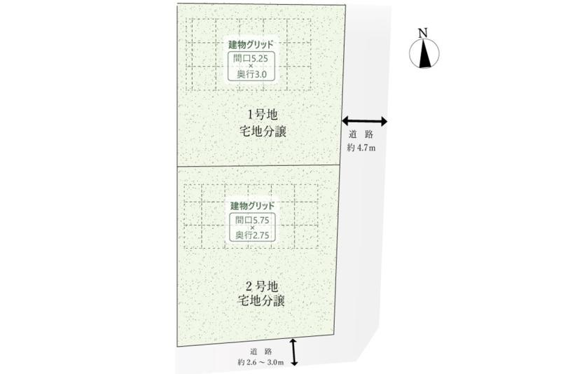 | 道路 | 東側幅員約4.7m、南側幅員約2.6~3.0mの公道に接する |